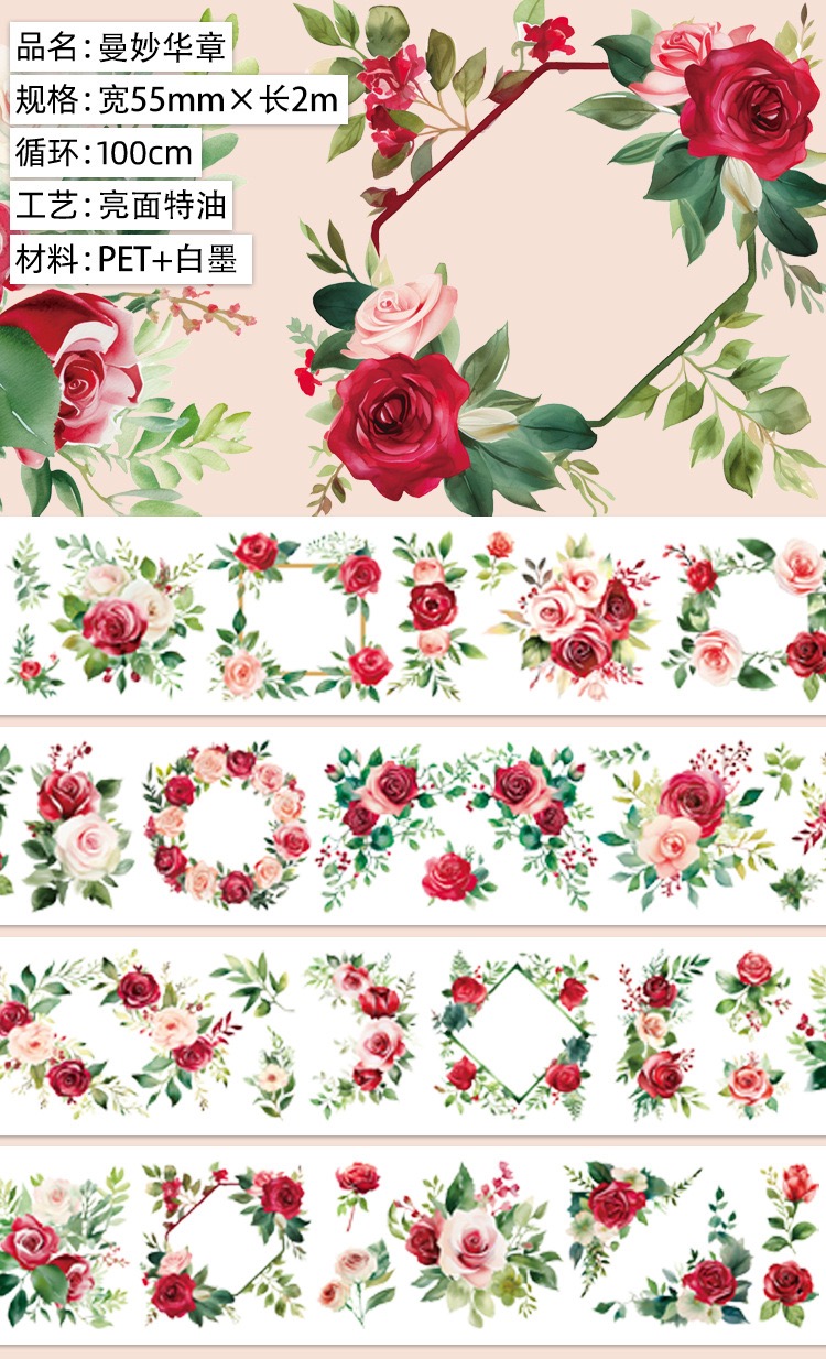 واشی شفاف (PET) طرح گل رز قرمز